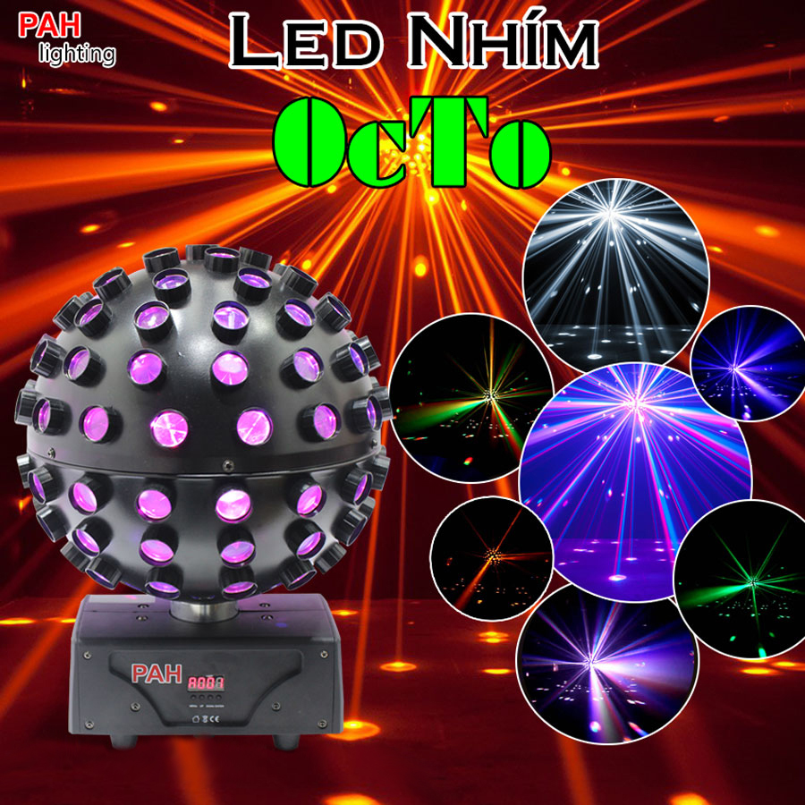- Đèn octo dễ dàng điều khiển qua DMX, chạy tự động, hoặc cảm ứng âm thanh.