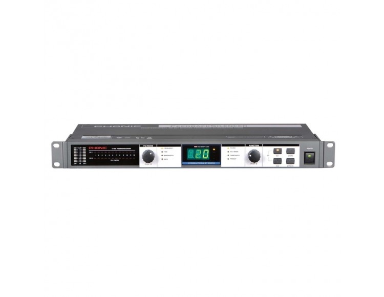 - Automatically searches for feedback in up to 12 frequencies per channel and intelligently removes it