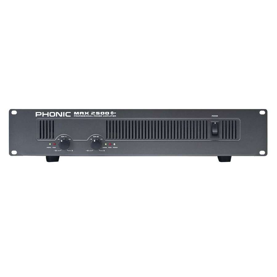 Ampli PHONIC MAX 2500 Plus cung cấp công suất lên tới 1500 Watt cho 8 ohms (Bridge) hoặc 750 Watt cho mỗi kênh ở 4 ohms (stereo) - lý tưởng cho các club lớn, nhà thờ, hội trường cũng như các không gian rộng lớn khác. Cổng Input MAX 2500 Plus theo chuẩn balanced XLRs, Chuẩn đầu ra Speakon hoặc Binding Post.