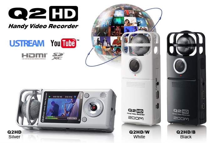 The first USB Mid-Side Mic.Expanding its versatility, the Q2HD also functions as a USB microphone with Mid-Side miking capabilities. Simply choose USB Mic in the units MENU and connect your Q2HD to a computer or iPad 2 or 3 (using Apple’s USB camera connector) to begin recording.USER INTERFACEMove aside.Zoom made on-the-go viewing better than ever with the Q2HD. You can easily switch between “Portrait” and “Landscape” playback by pressing and holding the PLAY key. Watch your videos anywhere with its color LCD screen and built-in reference speaker.Navigate with ease.The Q2HD features an icon-based user interface that makes navigating through all its functions easy and intuitive. Play, edit or delete movies, select video and audio formats and a host of other functions with ease.